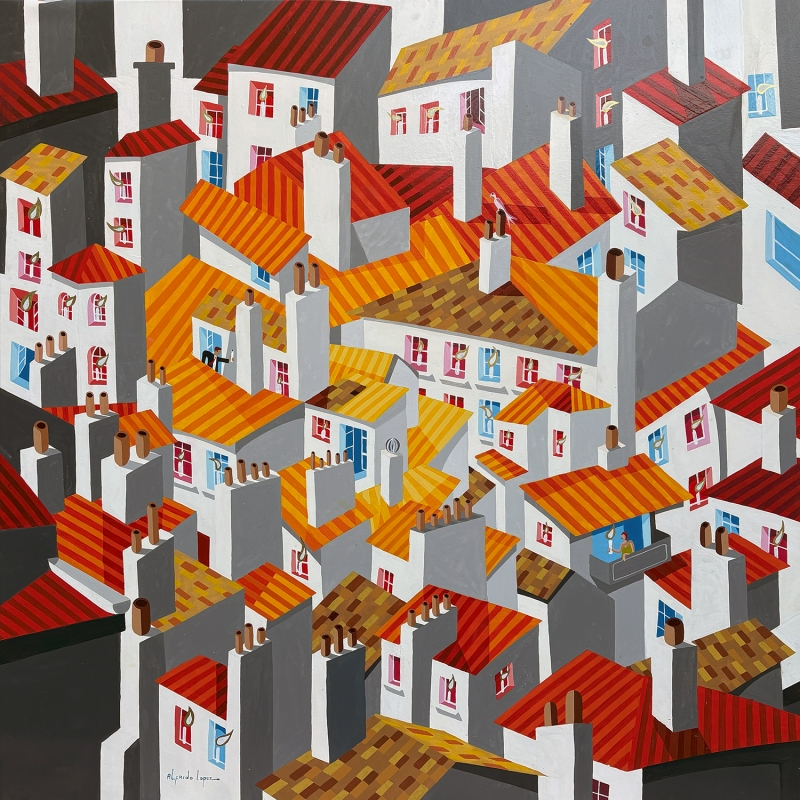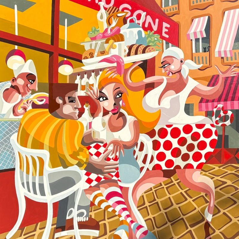 La preuve d'amour04/05/2025 Laque sur toile, 80 x 80 cm. Disponible à l'atelier 1900 €. Quelqu'un a vu passer un chat ?
